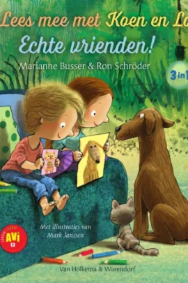 Deze tweede bundel van de AVI-boeken over Koen en Lot, geschreven door het succesvolle schrijversduo Marianne Busser en Ron Schröder, bevat drie avonturen. In ‘Een spook in de klas’ is de juf van Koen en Lot boos. Er gebeuren gekke dingen! Is er soms een spook in de klas? In ‘Een schat in het park’ zien Koen en Lot een vreemde man in het park. Hij stopt iets in de grond, maar wat is het? Een schat misschien? Het duo gaat op onderzoek uit. En in ‘Koen wint een prijs’ mag Koen met de hele klas naar de speeltuin. Ze gaan met de bus, maar Lot kan niet mee. Ze is van de trap gevallen. Dan heeft Koen een plan en de juf helpt mee. Hoe zal dit aflopen? Lees mee met Koen en Lot – Echte vrienden! bevat vrolijke illustraties van Mark Janssen.