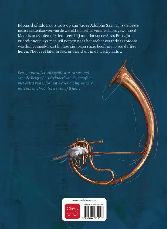 Edouard of Edo Sax is trots op zijn vader Adolphe Sax. Hij is de beste instrumentenbouwer van de wereld en heeft al veel medailles gewonnen! Maar is misschien niet iedereen blij met dat succes? Als Edo zijn vriendinnetje Lys mee wil nemen naar het atelier waar de saxofoons worden gemaakt, ziet hij hoe zijn papa ruzie heeft met twee deftige heren. Niet veel later breekt er brand uit in de werkplaats …
