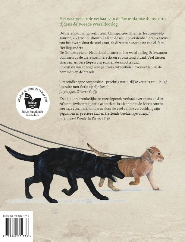 In 2015 was het 75 jaar geleden dat Rotterdam werd gebombardeerd. In ‘Een aap op de wc – een dierentuin in oorlogstijd’ vertelt Joukje Akveld het waargebeurde verhaal van de dieren en brengt de oorlog voor kinderen op een nieuwe manier dichterbij.
