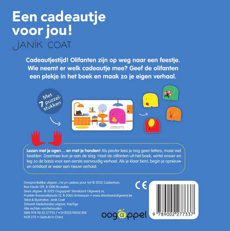 Lezen met je ogen… en met je handen! Als peuter lees je nog geen letters, maar wel beelden. Daarmee kun je aan de slag. Haal de olifanten uit het boek, vertel erover en leg zo de basis voor een eerste eenvoudig verhaal. Als je klaar bent, begin je opnieuw en ontstaat er weer een nieuw verhaal.