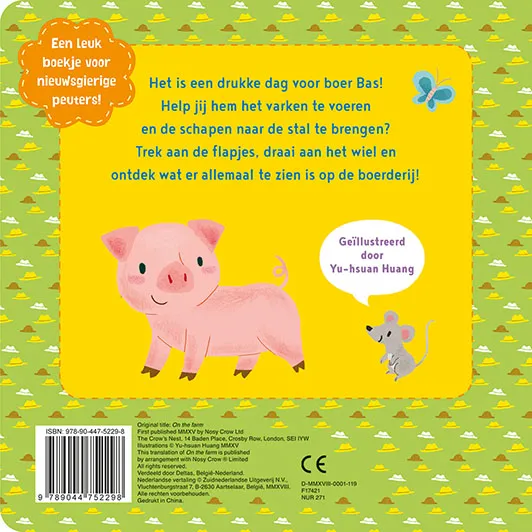 Het is een drukke dag voor boer Bas! Help jij hem het varken te voeren en de schapen naar de stal te brengen? Trek aan de flapjes, draai aan het wiel en ontdek wat er allemaal te zien is op de boerderij!