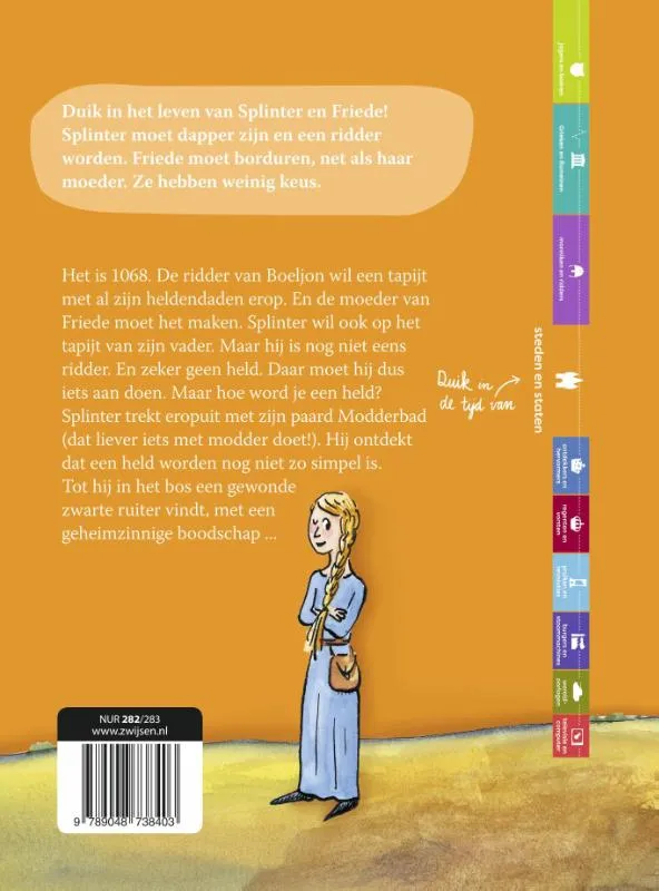 Het is 1068. De ridder van Boeljon wil een tapijt voor aan de muur van zijn kasteel. Met al zijn heldendaden erop. De moeder van Friede moet dit tapijt maken. Splinter, de zoon van de ridder, wil er ook op, maar hij is nog niet eens ridder. En zeker geen held.