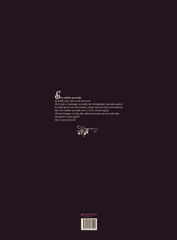 Eén enkele seconde. Jij denkt vast: dat is ook niet veel. Toch zijn er sommige secondes die belangrijker zijn dan andere. In ieder geval voor Jacominus, maar ook voor heel wat anderen. Dus 1 enkele seconde voor 1 of 10, of wat zeg ik, 100 personages, en die dan allemaal samen op een tekening die groter is dan jijzelf? Dat is juist wél veel.