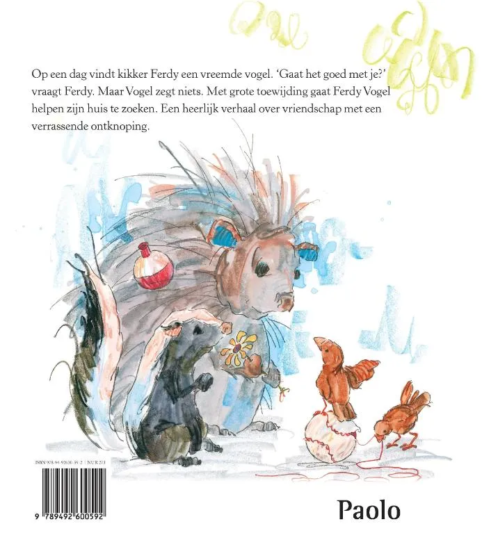 Op een dag vindt kikker Ferdy een vreemde vogel. ‘Gaat het goed met je?’ vraagt Ferdy. Maar Vogel zegt niets. Met grote toewijding gaat Ferdy Vogel helpen zijn huis te zoeken. Een heerlijk verhaal over vriendschap met een verrassende ontknoping.