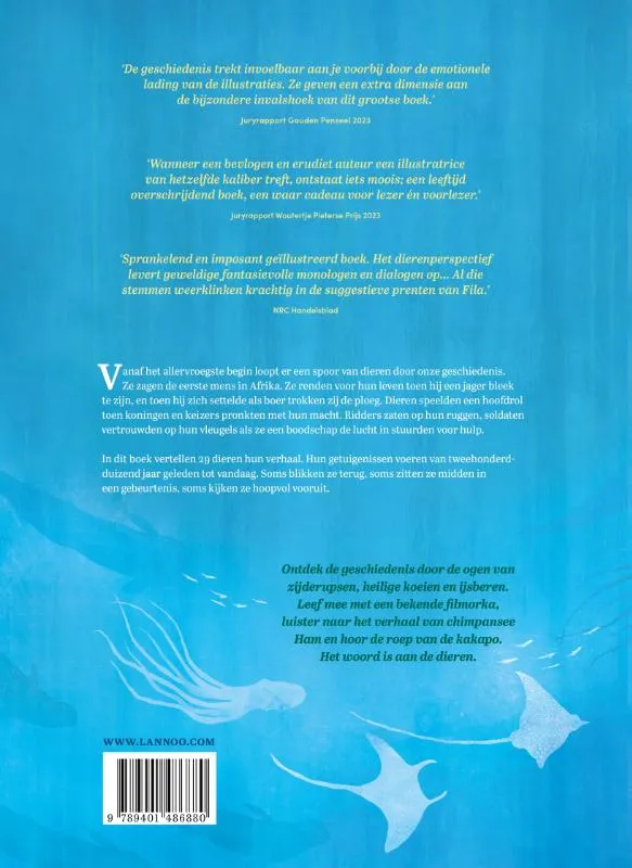 In dit boek vertellen 29 dieren hun verhaal. Hun getuigenissen voeren van tweehonderdduizend jaar geleden tot vandaag. Soms blikken ze terug, soms zitten ze midden in een gebeurtenis, soms kijken ze hoopvol vooruit.