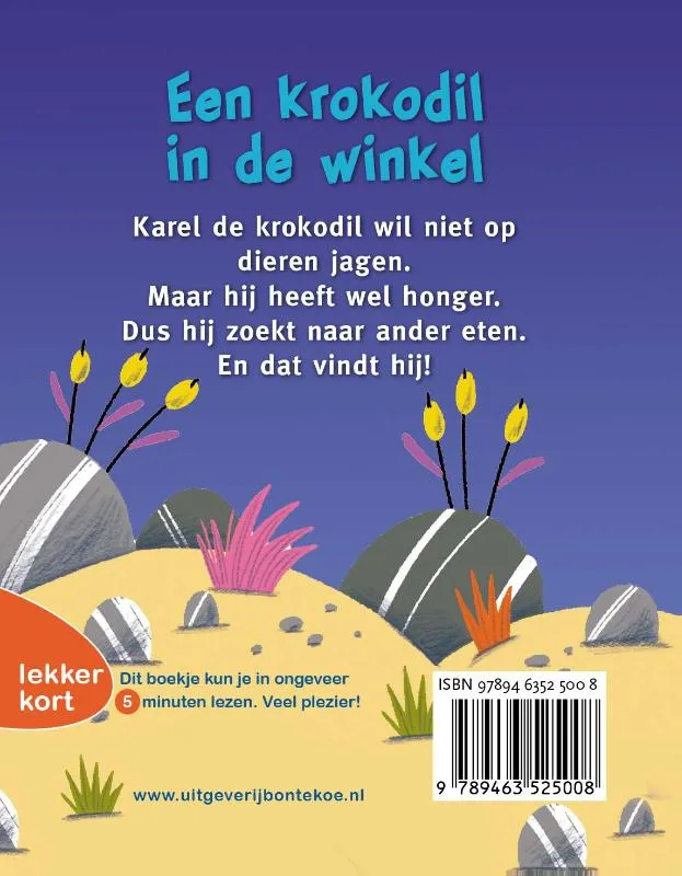 Karel de krokodil wil niet op dieren jagen. Maar hij heeft wel honger. Dus hij zoekt naar ander eten. En dat vindt hij!