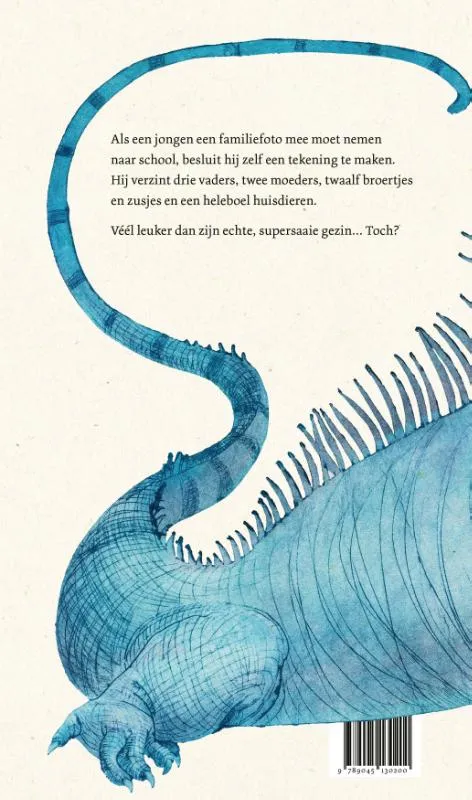 Als een jongen een familiefoto mee moet nemen naar school, besluit hij zelf een tekening te maken. Hij verzint drie vaders, twee moeders en twaalf broertjes en zusjes. En een heleboel huisdieren, waaronder een ongelofelijk grote en ongelofelijk gevaarlijke leguaan. Véél leuker dan zijn echte, supersaaie gezin…