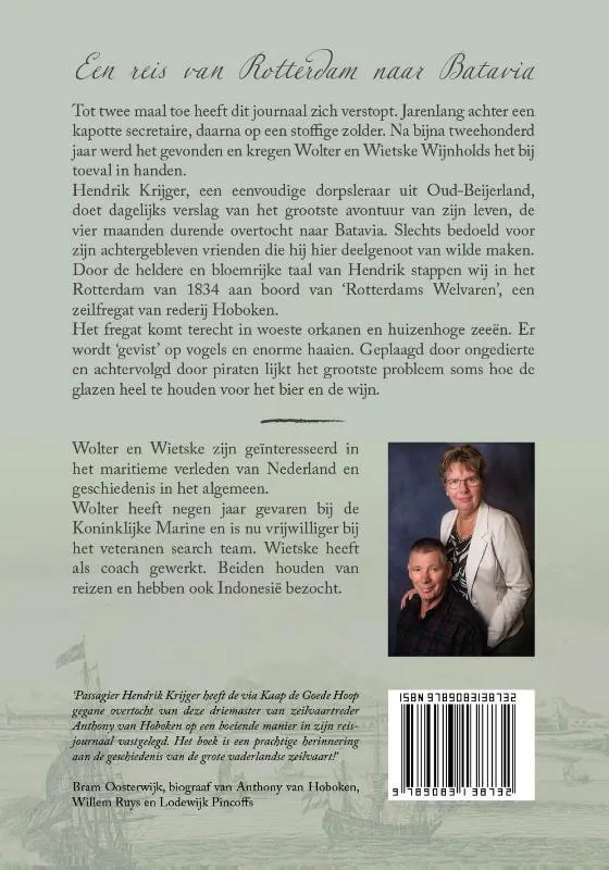 Hendrik Krijger, een eenvoudige dorpsleraar uit Oud-Beijerland, doet dagelijks verslag van het grootste avontuur van zijn leven, de vier maanden durende overtocht naar Batavia. Slechts bedoeld voor zijn achtergebleven vrienden die hij hier deelgenoot van wilde maken.
