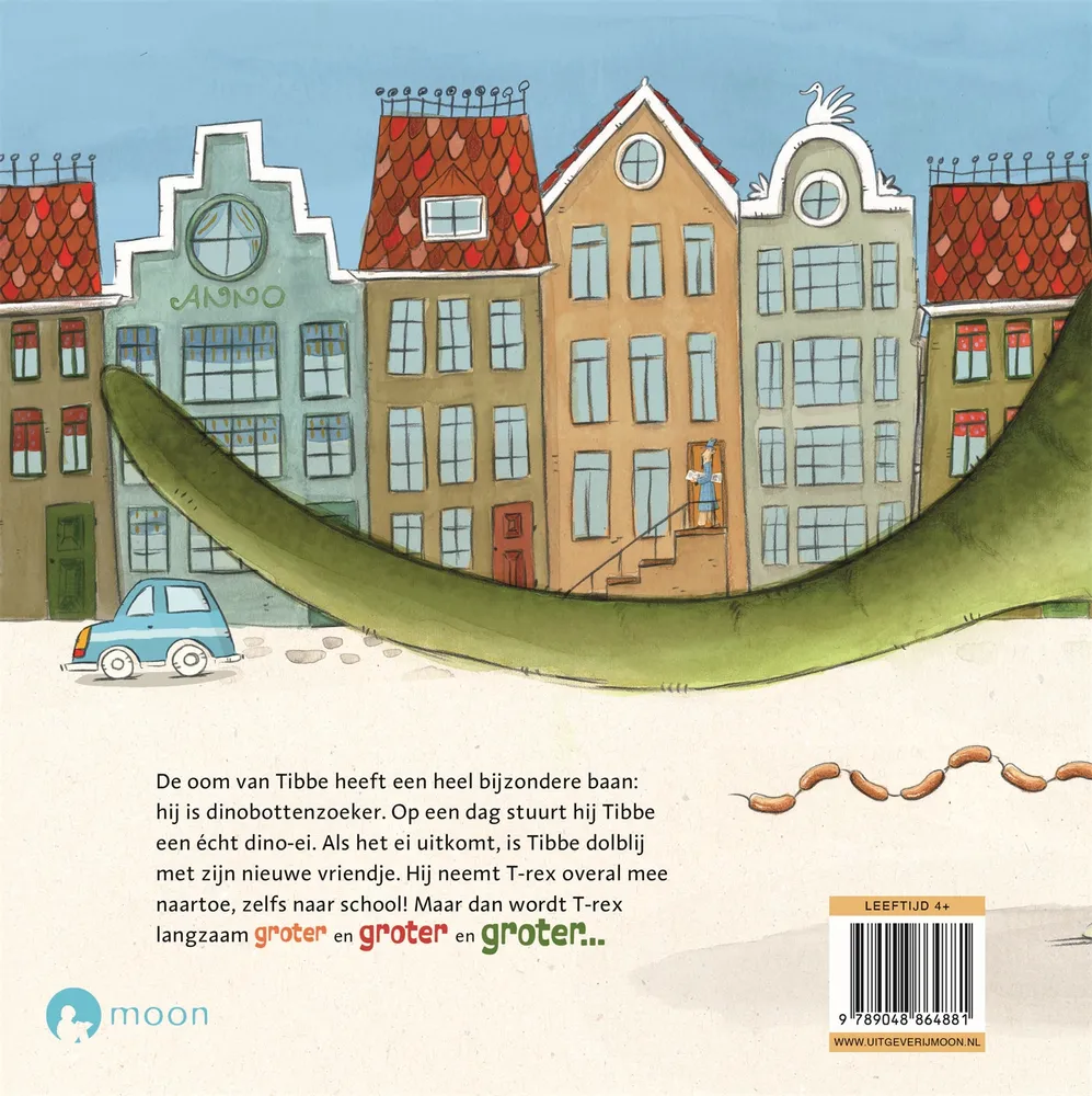 De oom van Tibbe heeft een heel bijzondere baan: hij is dinobottenzoeker. Op een dag stuurt hij Tibbe een écht dino-ei. Als het ei uitkomt, is Tibbe dolblij met zijn nieuwe vriendje. Hij neemt T-rex overal mee naartoe, zelfs naar school! Maar dan wordt T-rex langzaam groter en groter en groter…