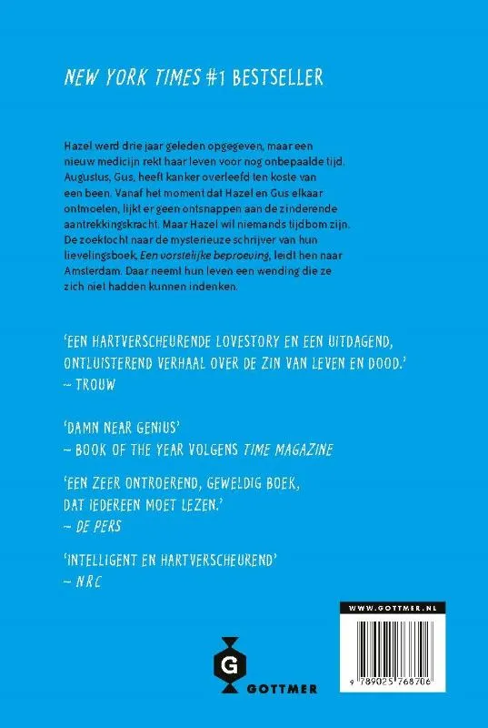 John Green heeft een meesterwerk geschreven: het wekt dan ook geen verbazing dat zijn roman bij verschijning de internationale bestsellerlijsten invloog en is bekroond met vele literatuurprijzen in binnen- en buitenland. In de VS werden van ‘The Fault In Our Stars’ nog voor verschijning meer dan 450.000 exemplaren verkocht. Het boek stond meer dan een jaar lang op nummer één in de NY Times bestsellerlijst. Inmiddels is de roman wereldwijd in meer dan dertig talen verkrijgbaar.