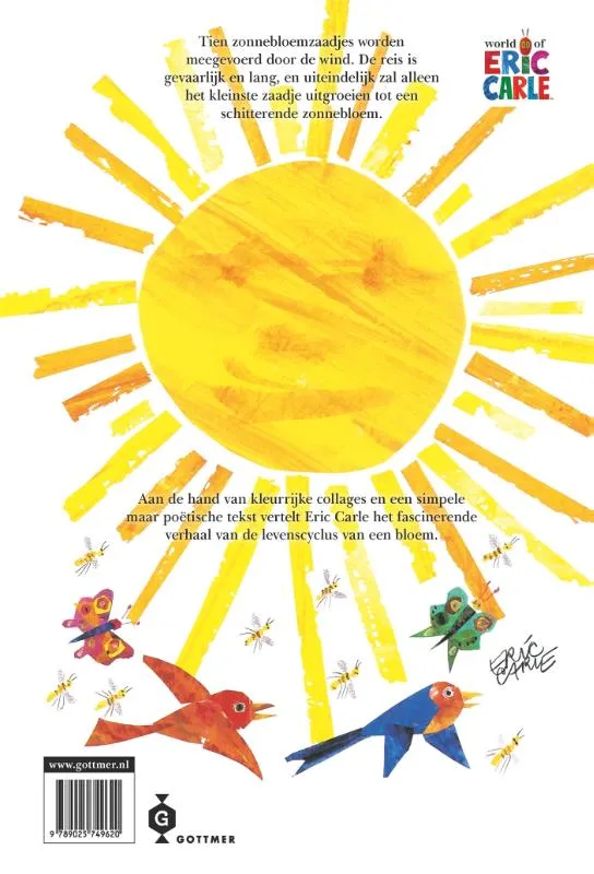 In ‘Een zaadje in de wind’ vertelt Eric Carle het fascinerende verhaal van de levenscyclus van een bloem. Voor kinderen vanaf 3 jaar.<br><br>Tien zonnebloemzaadjes worden meegevoerd door de wind. De reis is gevaarlijk en lang, en uiteindelijk zal alleen het kleinste zaadje uitgroeien tot een schitterende zonnebloem.<br><br>’Een zaadje in de wind’ is een prentenboek van schrijver en tekenaar Eric Carle, bekend van zijn wereldberoemde klassieker ‘Rupsje Nooitgenoeg’. Zijn kleurrijke collage-illustraties zijn ook in dit prentenboek een lust voor het oog. In combinatie met de simpele, maar poëtische tekst maken ze van het verhaal van de zonnebloem een prachtig en leerzaam voorleesboek.