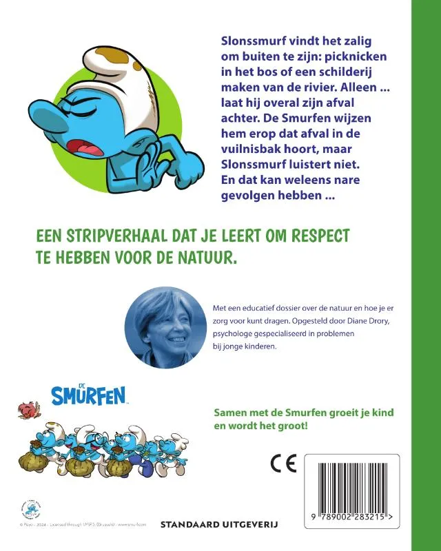 Slonssmurf vindt het zalig om buiten te picknicken of een wandeling te maken langs de rivier. Alleen … laat hij overal zijn afval achter. De Smurfen wijzen hem erop dat afval in de vuilnisbak hoort, maar Slonssmurf luistert niet. En dat kan wel eens nare gevolgen hebben …