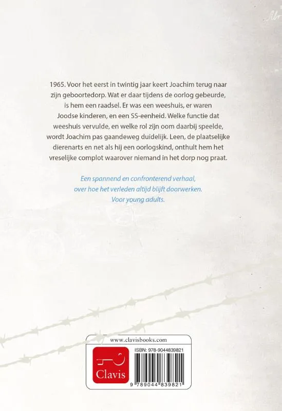 1965. Voor het eerst in twintig jaar keert Joachim terug naar zijn geboortedorp. Wat er daar tijdens de oorlog gebeurde, is hem een raadsel. Er was een weeshuis, er waren Joodse kinderen, en een SS-eenheid. Welke functie dat weeshuis vervulde, en welke rol zijn oom daarbij speelde, wordt Joachim pas gaandeweg duidelijk. Leen, de plaatselijke dierenarts en net als hij een oorlogskind, onthult hem het vreselijke complot waarover niemand in het dorp nog praat.