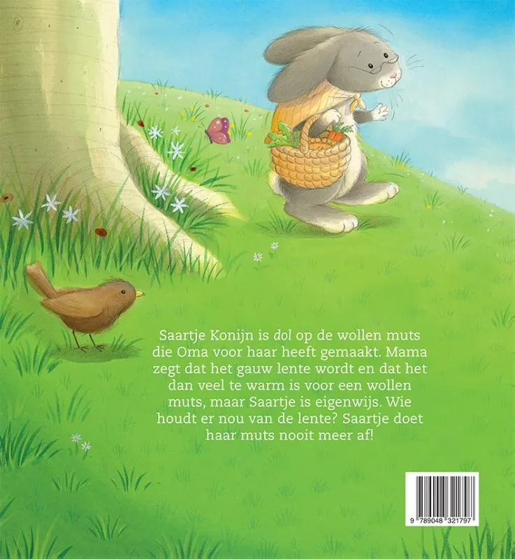 Saartje Konijn is dol op de wollen muts die Oma voor haar heeft gemaakt. Mama zegt dat het gauw lente wordt en dat het dan veel te warm is voor een wollen muts, maar Saartje is eigenwijs. Wie houdt er nou van de lente? Saartje doet haar muts nooit meer af!