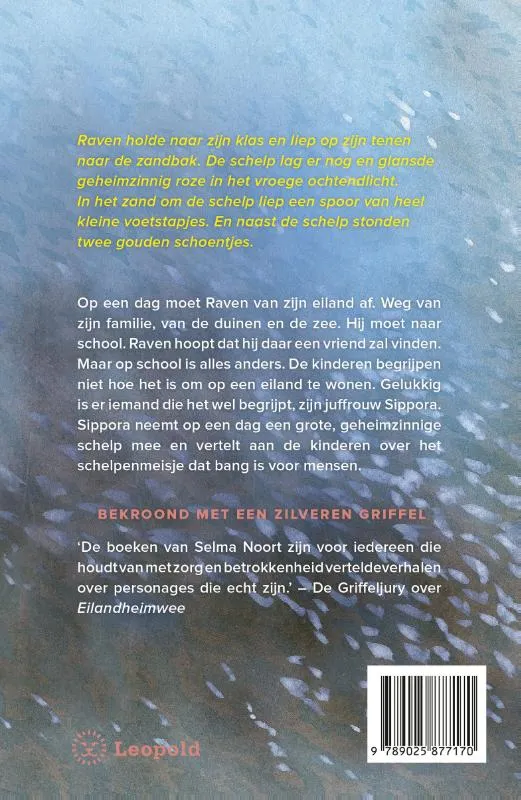Op een dag moet Raven van zijn eiland af. Weg van zijn familie, van de duinen en de zee. Hij moet naar school. Raven hoopt dat hij daar een vriend zal vinden. Maar op school is alles anders. De kinderen begrijpen niet hoe het is om op een eiland te wonen. Gelukkig is er iemand die het wel begrijpt, zijn juffrouw Sippora. Sippora neemt op een dag een grote, geheimzinnige schelp mee en vertelt aan de kinderen over het schelpenmeisje dat bang is voor mensen.<br>