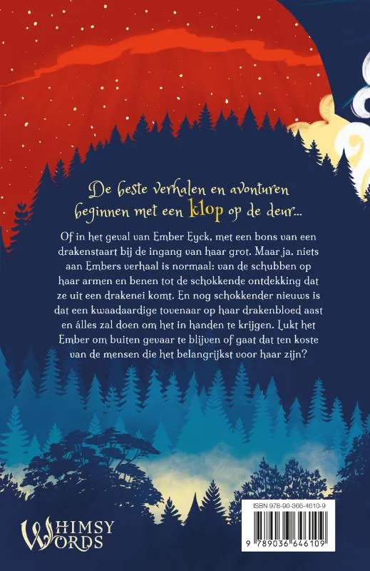 De beste verhalen en avonturen beginnen met een klop op de deur… Of in het geval van Ember Eyck, met een bons van een drakenstaart bij de ingang van haar grot. Maar ja, niets aan Embers verhaal is normaal: van de schubben op haar armen en benen tot de schokkende ontdekking dat ze uit een drakenei komt. En nog schokkender nieuws is dat een kwaadaardige tovenaar op haar drakenbloed aast en álles zal doen om het in handen te krijgen. Lukt het Ember om buiten gevaar te blijven of gaat dat ten koste van de mensen die het belangrijkst voor haar zijn?