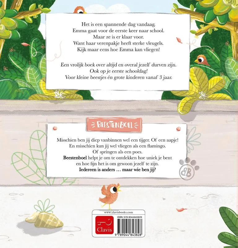 Het is een spannende dag vandaag. Emma gaat voor de eerste keer naar school. Maar ze is er klaar voor. Want haar verenpakje heeft sterke vleugels. Kijk maar eens hoe Emma kan vliegen!