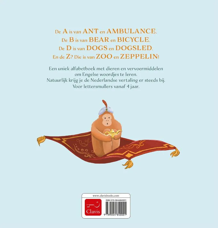 Een uniek alfabetboek met dieren en vervoermiddelen om Engelse woordjes te leren. Natuurlijk krijg je de Nederlandse vertaling er steeds bij. Voor lettersmullers vanaf 4 jaar.