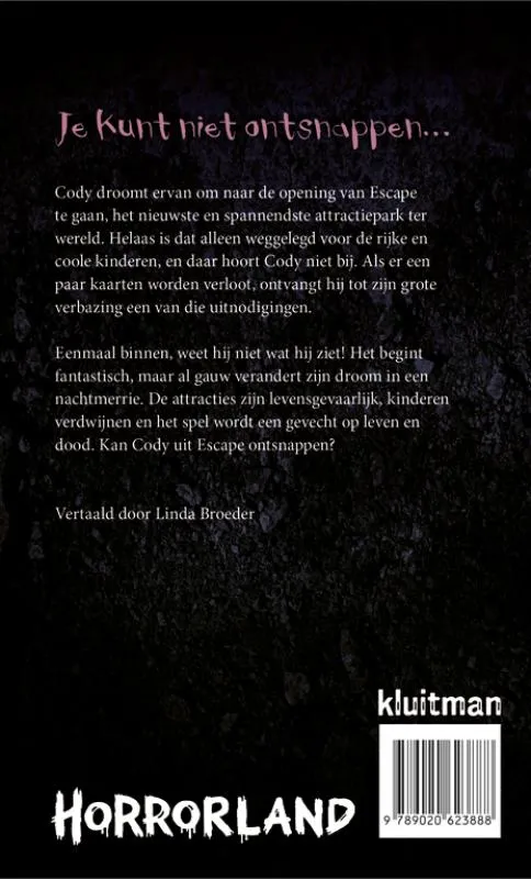 Cody droomt ervan om naar het spannende nieuwe attractiepark Escape te gaan. Als er kaarten worden verloot, ontvangt hij tot zijn verbazing één van de uitnodigingen. Als hij eenmaal in het pretpark is, verandert zijn droom echter al gauw in een nachtmerrie. Vanaf ca. 10 jaar.
