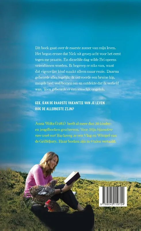 Dit boek gaat over de raarste zomer van mijn leven. Het begon ermee dat Nick uit groep acht voor het eerst tegen me praatte. En diezelfde dag wilde Evi opeens vriendinnen worden. Ik begreep er niks van, want dat eigenwijze kind maakt alleen maar ruzie. Daarna gebeurde alles tegelijk: ik ontvoerde een bruine kip, zaagde heel veel bomen om en ontdekte dat ik verliefd was. Toen gebeurde er een vreselijk ongeluk.<br><br>