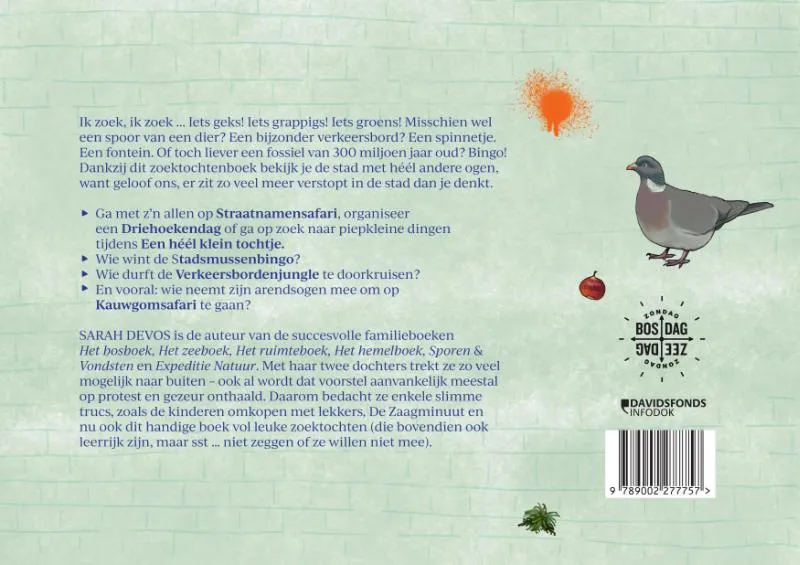 Ik zoek, ik zoek … Iets geks! Iets grappigs! Iets groens! Misschien wel een spoor van een dier? Een bijzonder verkeersbord? Een spinnetje. Een fontein. Of toch liever een fossiel van 300 miljoen jaar oud? Bingo! Dankzij dit zoektochtenboek bekijk je de stad met héél andere ogen, want geloof ons, er zit zo veel meer verstopt in de stad dan je denkt.