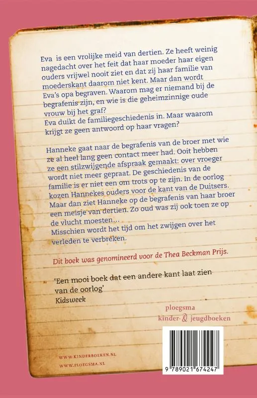 Eva is een vrolijke meid van dertien. Ze heeft weinig nagedacht over het feit dat haar moeder haar eigen ouders vrijwel nooit ziet en dat zij haar familie van moederskant daarom niet kent. Maar dan wordt Eva’s opa begraven. Waarom mag er niemand bij de begrafenis zijn, en wie is die geheimzinnige oude vrouw bij het graf? <br>