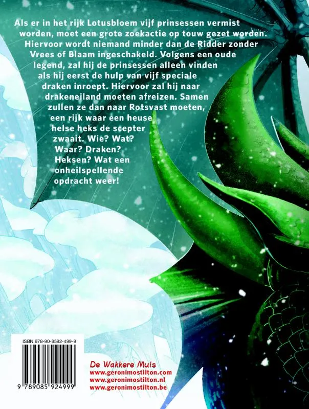 Op Dragonera, het drakeneiland, wonen vijf drakenstammen, elk met een eigen bijzondere gave. En zonder hun hulp kan Geronimo niet aan zijn opdracht beginnen: het veilig terugbrengen van vijf gekidnapte inwoners van het rijk Lotusbloem, die worden vastgehouden door de helse heks Dondersteen. Geronimo zal zich dus niet alleen over zijn angsten heen moeten zetten en de draken om hulp vragen, maar ook zal hij daarna naar het verschrikkelijke versteende rijk van de heks moeten afreizen. Als dat maar goed gaat …