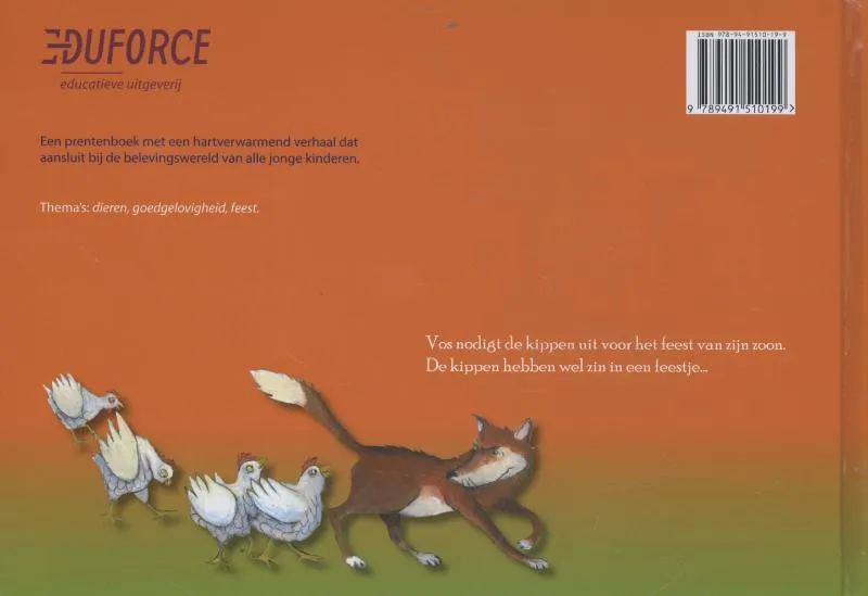 Vos nodigt de kippen uit voor het feest van zijn zoon. De kippen hebben wel zin in een feestje…