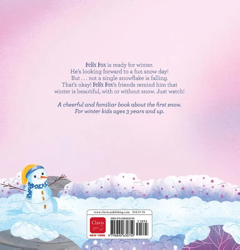 Felix Fox is ready for winter. He’s looking forward to a fun snow day! But . . . not a single snowflake is falling. That’s okay! Felix Fox’s friends remind him that winter is beautiful, with or without snow. Just watch! A cheerful and familiar book about the first snow. For winter kids ages 3 years and up.