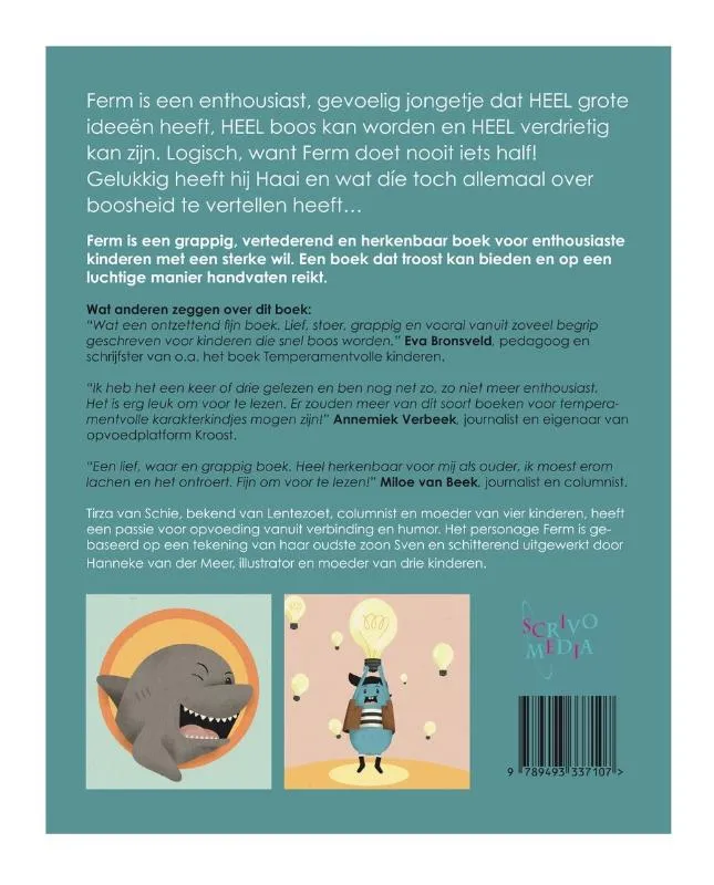 Ferm is een enthousiast, gevoelig jongetje dat HEEL grote ideeën heeft, HEEL boos kan worden en HEEL verdrietig kan zijn. Logisch, want Ferm doet nooit iets half! Gelukkig heeft hij Haai en wat die toch allemaal over boosheid te vertellen heeft…