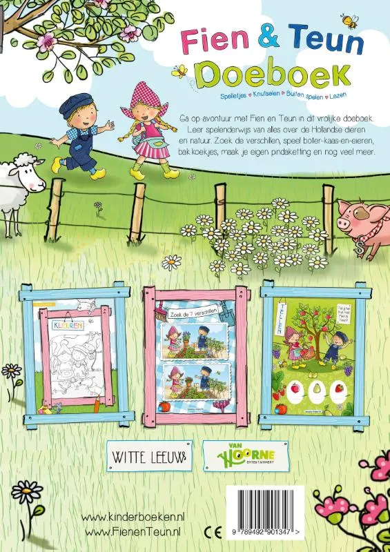 Ga op avontuur met Fien en Teun in dit vrolijke doeboek. Leer spelenderwijs van alles over de Hollandse dieren en natuur. Zoek de verschillen, speel boter-kaas-en-eieren, bak koekjes, maak je eigen pindaketting en nog veel meer.