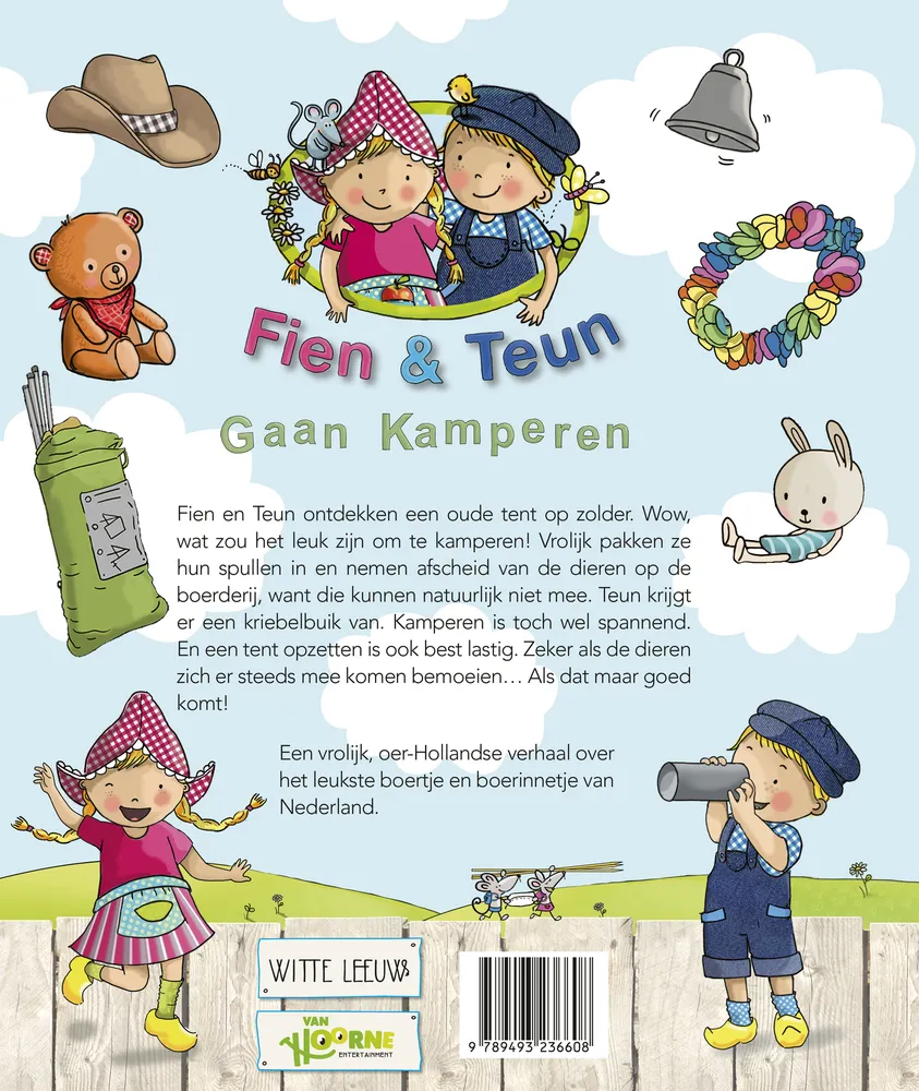 Fien en Teun ontdekken een oude tent op zolder. Wow, wat zou het leuk zijn om te kamperen! Papa en mama vinden het goed. Vrolijk pakken ze