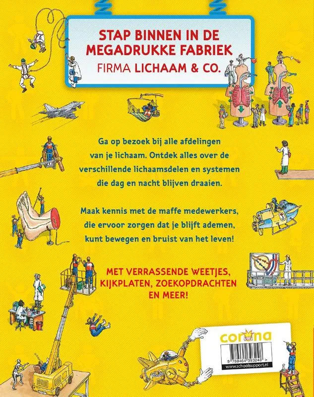 Ga op bezoek bij alle afdelingen van je lichaam. Ontdek alles over de verschillende lichaamsdelen en systemen die dag en nacht blijven draaien. Maak kennis met de maffe medewerkers, die ervoor zorgen dat je blijft ademen, kunt bewegen en bruist van het leven!