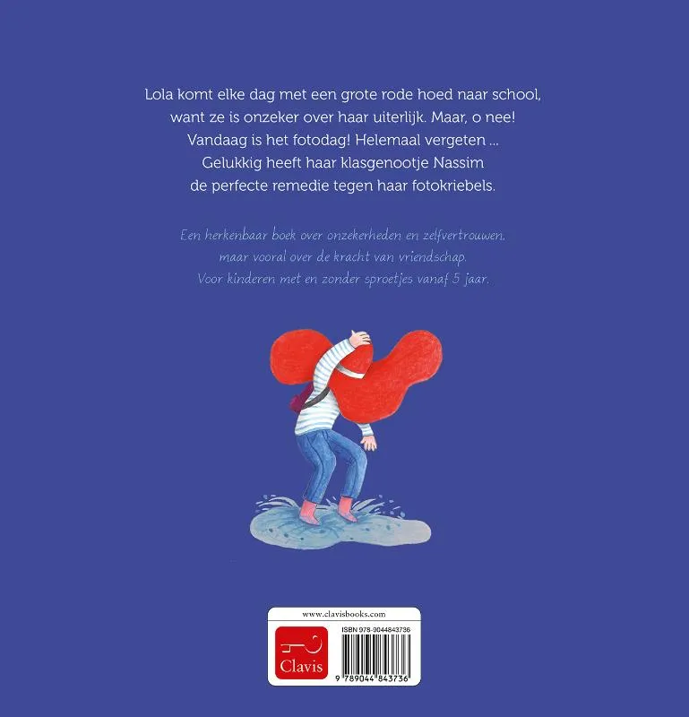 Lola komt elke dag met een grote rode hoed naar school, want ze is onzeker over haar sproetjes. Maar, o nee! Vandaag is het fotodag! Helemaal vergeten … Gelukkig heeft haar klasgenootje Nassim de perfecte remedie tegen haar fotokriebels.
