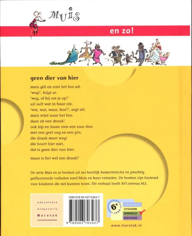 Muis rent het bos uit en gilt dat er een draak zit. Uil gelooft er niks van, maar ook kip en haan zien iets dat op een draak lijkt. De dieren zijn bang. Dat is geen dier van hier, dat beest moet weg! En dus gaan haan en rat met pijl en boog het bos in. Maar is het wel een draak?