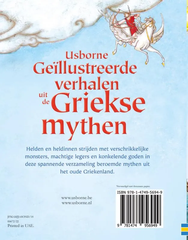 Een fantastische verzameling van Griekse mythen, spannend voor jonge lezers. Met de meest bekende Griekse helden en monsters, onder anderen Perseus en Medea, Pegasus, Herakles, Odysseus, het Paard van Troje en de Minotaurus. Achteraan in het boek is er uitleg over de Griekse goden en andere Griekse mythen.