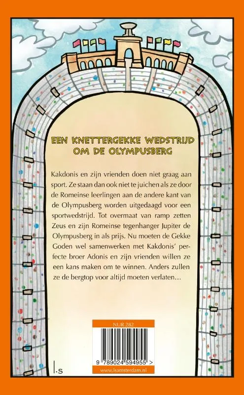 Alle delen zijn los van elkaar te lezen. Kakdonis en zijn vrienden zijn niet wat je noemt atleten. Dus als hun school uitgedaagd wordt om mee te doen aan een sportcompetitie reageren ze niet enthousiast. Ze moeten het opnemen tegen de leerlingen van de Romeinse school aan de andere kant van de Olympusberg. Alsof dat niet al erg genoeg is, laten Zeus en zijn Romeinse tegenhanger, Jupiter, zich te veel meeslepen door de wedstrijd en zetten de berg in als prijs. Zullen de Gekke Goden een manier vinden om samen te werken met Kakdonis’ perfecte broer Adonis en zijn atletische vrienden om de Romeinen te verslaan, of moeten ze hun bergtop voor altijd verlaten?