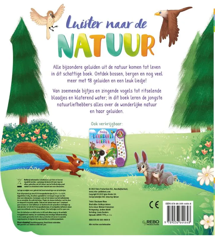 Van zoemende bijtjes en zingende vogels tot ritselende blaadjes en klaterend water; in dit boek leren de jongste natuurliefhebbers alles over de wonderlijke natuur en haar geluiden.