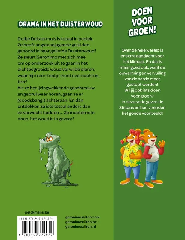Geronimo’s vriendin Duifje Duistermuis is in paniek, en dat is ze niet vaak… Zeg maar: nooit! Wat is er aan de poot? Ze heeft enge geluiden gehoord in het Duisterwoud, vlak bij de plek waar zij met haar familie woont. Duifje is dol op alles wat griezelig en akelig is, dus dat zij nu bang is, wil wel wat zeggen… Ze schakelt Geronimo in om haar te helpen uitzoeken wat er gaande is. Ook al trillen zijn snorharen bij het idee naar het bos te moeten, twijfelt hij geen moment. Voor een vriendin in nood staat hij altijd klaar! Samen gaan ze op pad en als ze even later achterhalen waar de geluiden vandaan komen, blijkt het iets heel anders te zijn dan ze verwacht hadden. Het Duisterwoud is in gevaar, wat een drama!