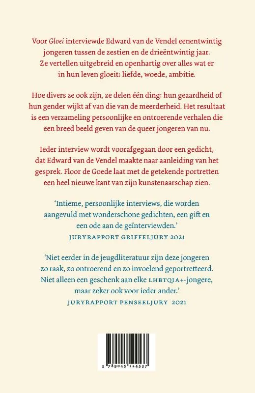 In deze bundel laat Edward van de Vendel twintig jongeren tussen de zestien en de drieëntwintig jaar aan het woord. Hun ontroerende persoonlijke verhalen geven een breed beeld van de ‘queer’ jongeren van nu. Ze vertellen uitgebreid en openhartig over alles wat er in hun leven gloeit: liefde, woede, ambitie. Daarin zijn ze zeer verschillend: van de achttienjarige paralympische zwemkampioen tot de Syrische bootvluchteling. Hoe divers ze ook zijn, ze hebben één ding gemeen: hun geaardheid of hun gender wijkt af van die van de meerderheid. Hun verhalen ontroeren en laten je niet zelden met ingehouden adem verder en verder lezen.