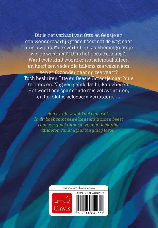 Dit is het verhaal van Otte en Geesje en een wonderbaarlijk groen beest dat de weg naar huis kwijt is. Maar vertelt het grashemelgroentje wel de waarheid? Of is het Geesje die liegt? Want welk kind woont er nu helemaal alleen en heeft een vader die telkens zes weken aan een stuk zonder haar op zee vaart? Toch besluiten Otte en Geesje Groentje naar huis te brengen. Nog een geluk dat hij kan vliegen. Het wordt een spannende reis vol avonturen, en het slot is zeldzaam verrassend…