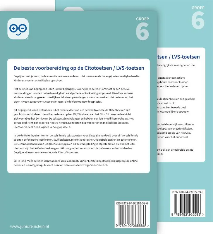 Beide Oefenboeken zijn geschikt voor kinderen die willen oefenen op het M6/E6-niveau van het Cito. Het eerste deel richt zich vooral op het M6-niveau. De teksten zijn wat korter en makkelijker leesbaar. Het tweede deel richt zich meer op het E6-niveau. De teksten zijn wat langer en hebben een iets moeilijkere opbouw. Hierdoor is deel 2 een logisch vervolg op deel 1.