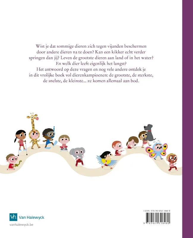 Het antwoord op deze vragen en nog vele andere ontdek je in dit vrolijke boek vol dierenkampioenen: de grootste, de sterkste, de snelste, de kleinste… ze komen allemaal aan bod.