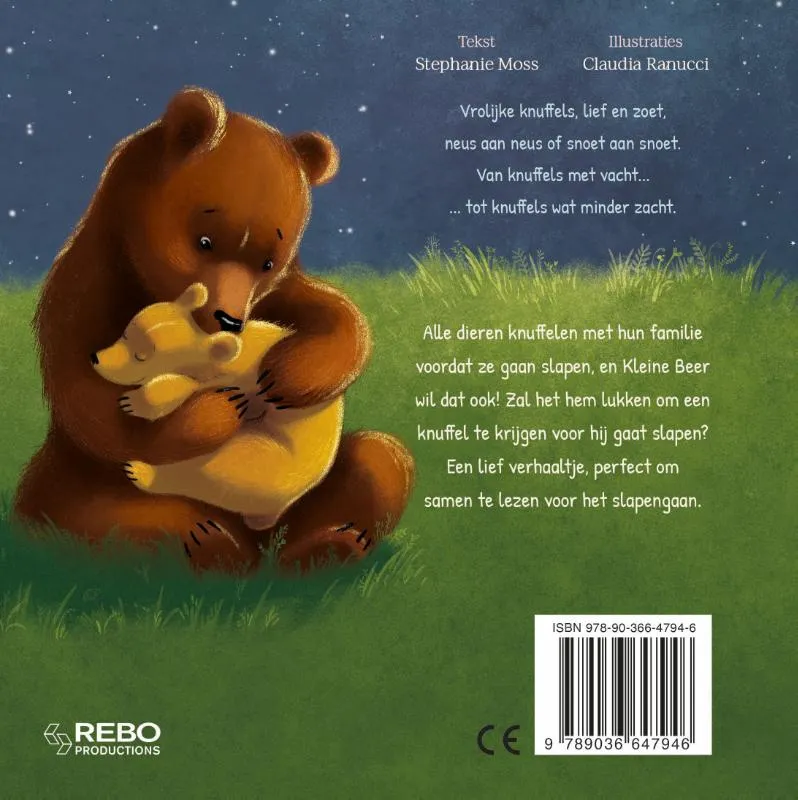 Alle dieren knuffelen met hun familie voordat ze gaan slapen, en kleine beer wil dat ook! Zal het hem lukken om een knuffel te krijgen voor hij gaat slapen? Een lief verhaaltje, perfect om samen te lezen voor het slapengaan.