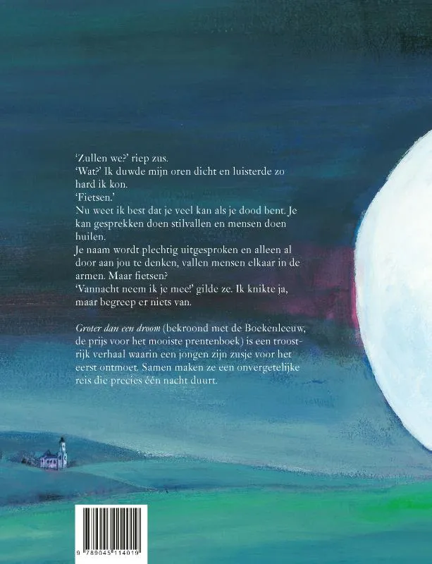 Groter dan een droom is een troostrijk verhaal waarin een jongen zijn zusje voor het eerst ontmoet. Samen maken ze een onvergetelijke reis die precies één nacht duurt.