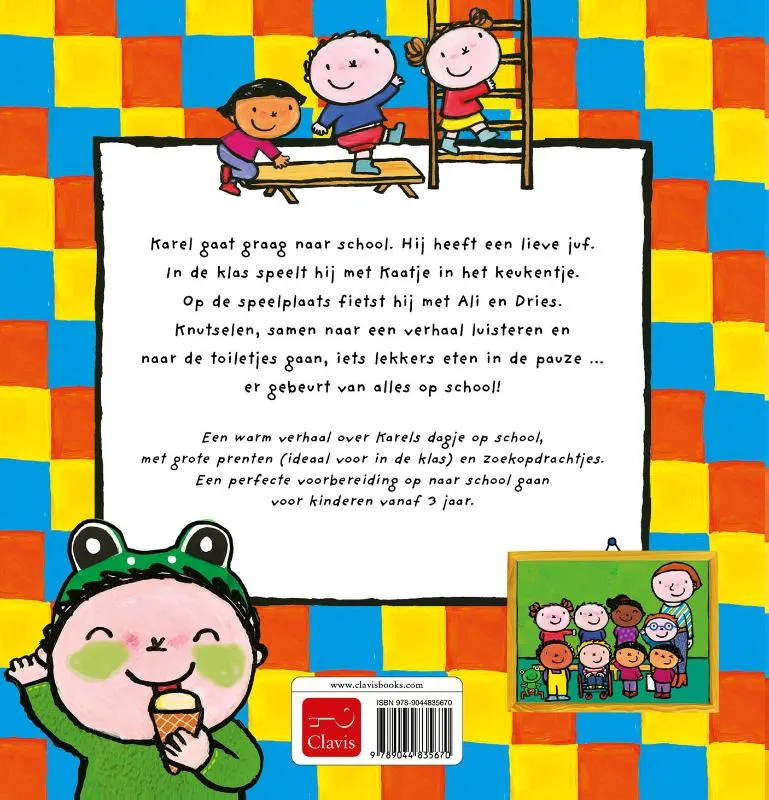 Een warm verhaal over Karels dagje op school, met grote prenten (ideaal voor in de klas) en zoekopdrachtjes. Een perfecte voorbereiding op naar school gaan voor kinderen vanaf 3 jaar.