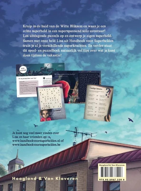 Kruip in de huid van de Witte Bliksem en waan je een echte superheld in een superspannend solo-avontuur! Los uitdagende puzzels op en ontwerp je eigen superheld. Samen met onze held Lisa uit ‘Handboek voor Superhelden’ train je al je verschillende superkrachten. En verder staat dit speel- en puzzelboek natuurlijk vol tips over wat je kunt doen tijdens de vakantie!