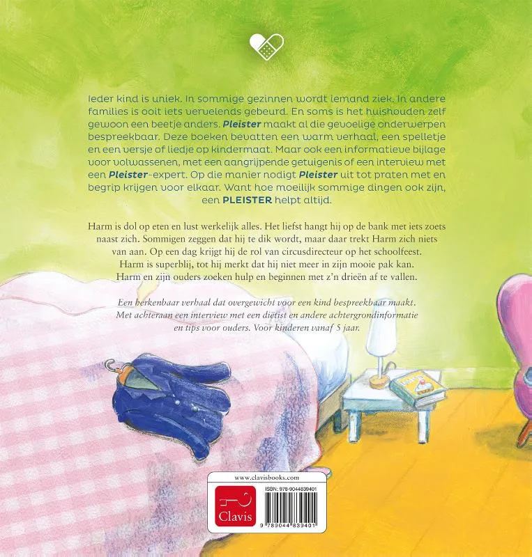 Ieder kind is uniek. In sommige gezinnen wordt iemand ziek. In andere families is ooit iets vervelends gebeurd En soms is het huishouden zelf gewoon een beetje anders. Pleister maakt al die gevoelige onderwerpen bespreekbaar. Deze boeken bevatten een warm verhaal, een spelletje en een versje of liedje op kindermaat. Maar ook een informatieve bijlage voor volwassenen, met een aangrijpende getuigenis of een interview met een Pleister-expert. Op die manier nodigt Pleister uit tot praten met en begrip krijgen voor elkaar. Want hoe moeilijk sommige dingen ook zijn, een pleister helpt altijd.