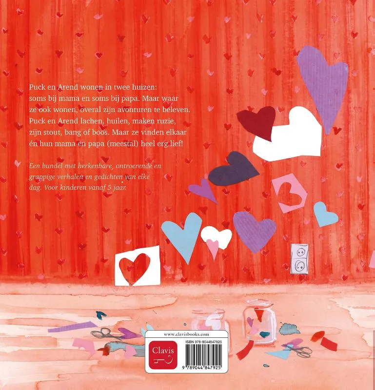 Puck en Arend wonen in twee huizen: soms bij mama en soms bij papa. Maar waar ze ook wonen, overal zijn avonturen te beleven. Puck en Arend lachen, huilen, maken ruzie, zijn stout, bang of boos. Maar ze vinden elkaar én hun mama en papa (meestal) heel erg lief!