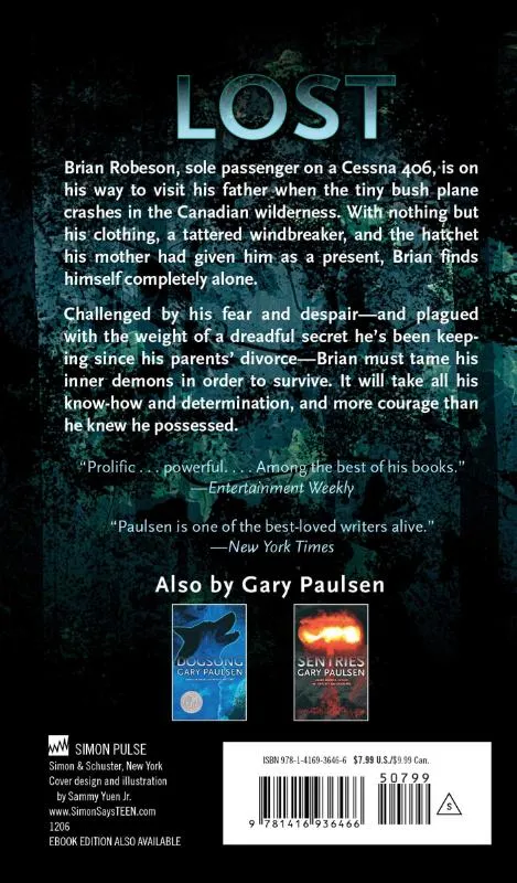 At first consumed by despair and self-pity, Brian slowly learns survival skills—how to make a shelter for himself, how to hunt and fish and forage for food, how to make a fire—and even finds the courage to start over from scratch when a tornado ravages his campsite. When Brian is finally rescued after fifty-four days in the wild, he emerges from his ordeal with new patience and maturity, and a greater understanding of himself and his parents.